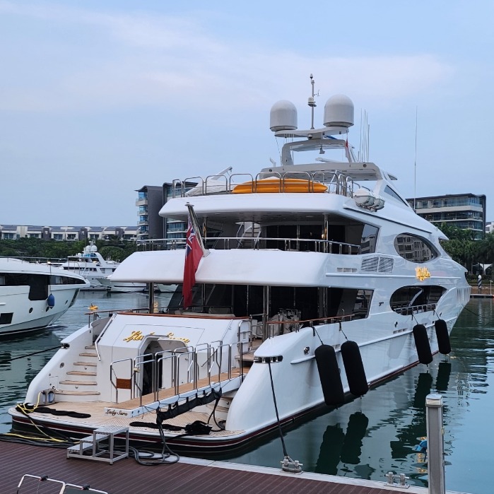 Lady Sura was spotted here at the prestigious marina at Sentosa Cove, Singapore, between 18-20th April 2023. She is now currently moored further north at Singapore’s Pasir Panjang port.