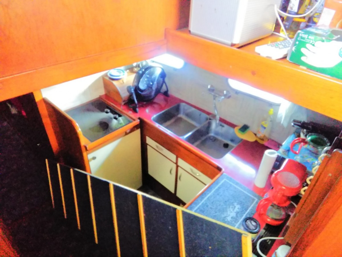 500L water and 1000L fuel tank. The bathroom is equipped with an 80 liter Isotherm boiler (which heats the water while traveling). In addition, there is a Sea toilet, shower and washbasin in the bathroom.